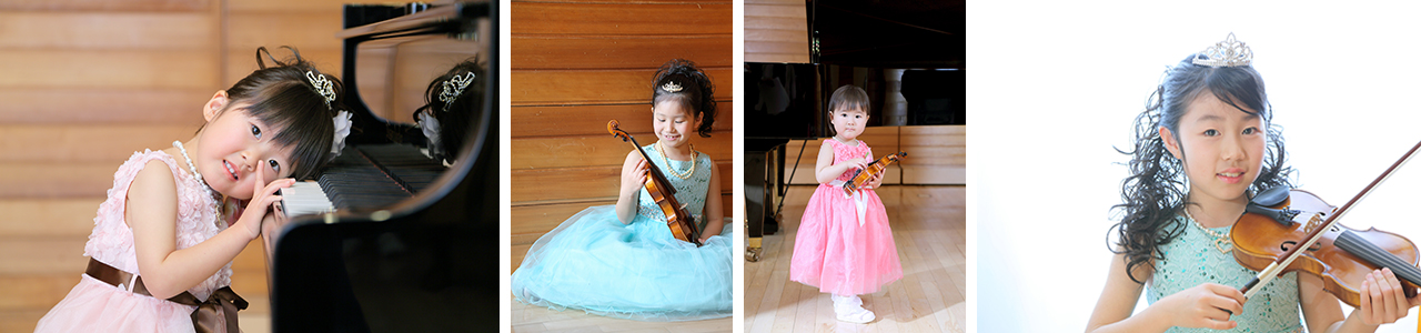- ③人気フォトグラファーかくたみほさんによる、ヤマハグランドピアノCFX(コンサートモデル)やバイオリンとのフォトジェニック撮影